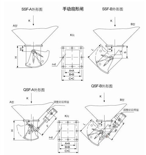 SF-A、SF-B扇形閘門由優(yōu)質(zhì)鋼板焊接而成,結(jié)構(gòu)簡(jiǎn)單,它具有開啟靈活無卡阻等特點(diǎn)。SF-A、SF-B扇形閘門廣泛用于建材、冶金、礦山、化驗(yàn)室、電力等行業(yè)是各類落料系統(tǒng)的卸料控制裝置。